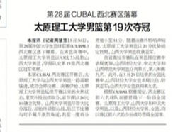 原文:本报讯 (记者周慧芳)3月30日,第28届中国大学生篮球联赛(CUBAL)西北赛区落下帷幕。在男篮决赛中,太原理工大学男篮...
