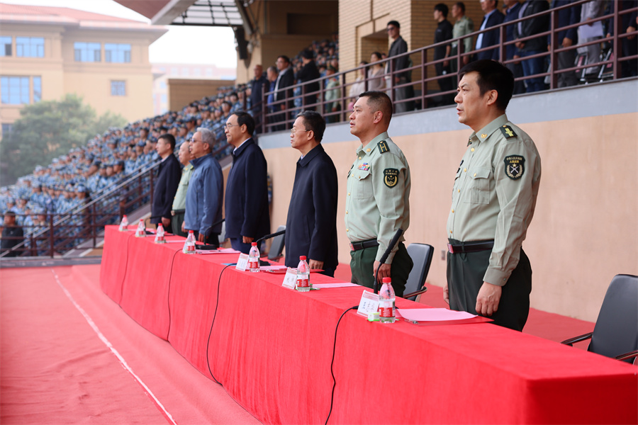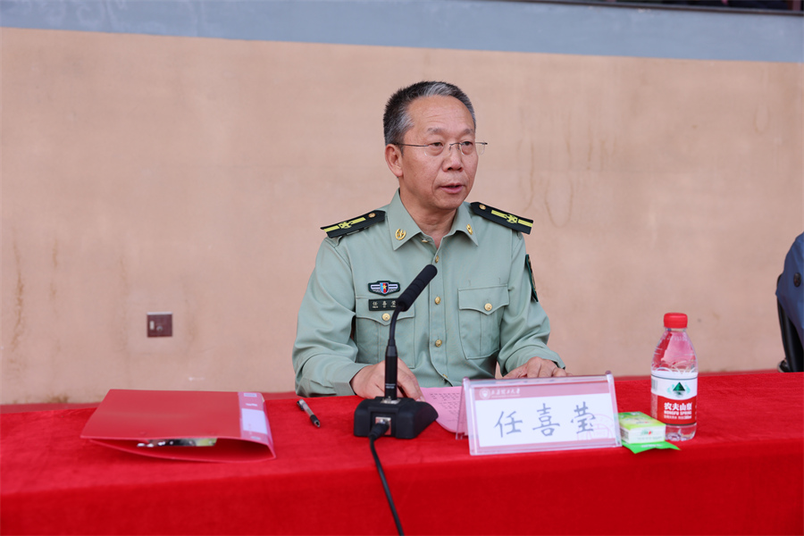 任喜莹作军训总结报告,代表学校向英雄的武警晋中支队首长和各位教官表示衷心的感谢。他指出,军训带给同学们的远不止站军姿、走正步、整内务等技能体验,更关键的是精神层面的成长蜕变:精神更饱满、意志更坚定,国防意识与纪律观念明显增强,集体荣誉感和团队协作意识有效提升。这些珍贵收获,为同学们从容开启大学生活、应对各类挑战树立了信心,夯实了基础。“青年兴则国家兴,中国发展要靠广大青年挺膺担当”。他希望大家要坚定理想信念、厚植家国情怀,要学会吃苦耐劳、弘扬军人作风,要坚持团结互助、携手共同进步。在今后的学习生活中,彼此支撑、并肩奋斗,放飞人生梦想,书写青春华章。