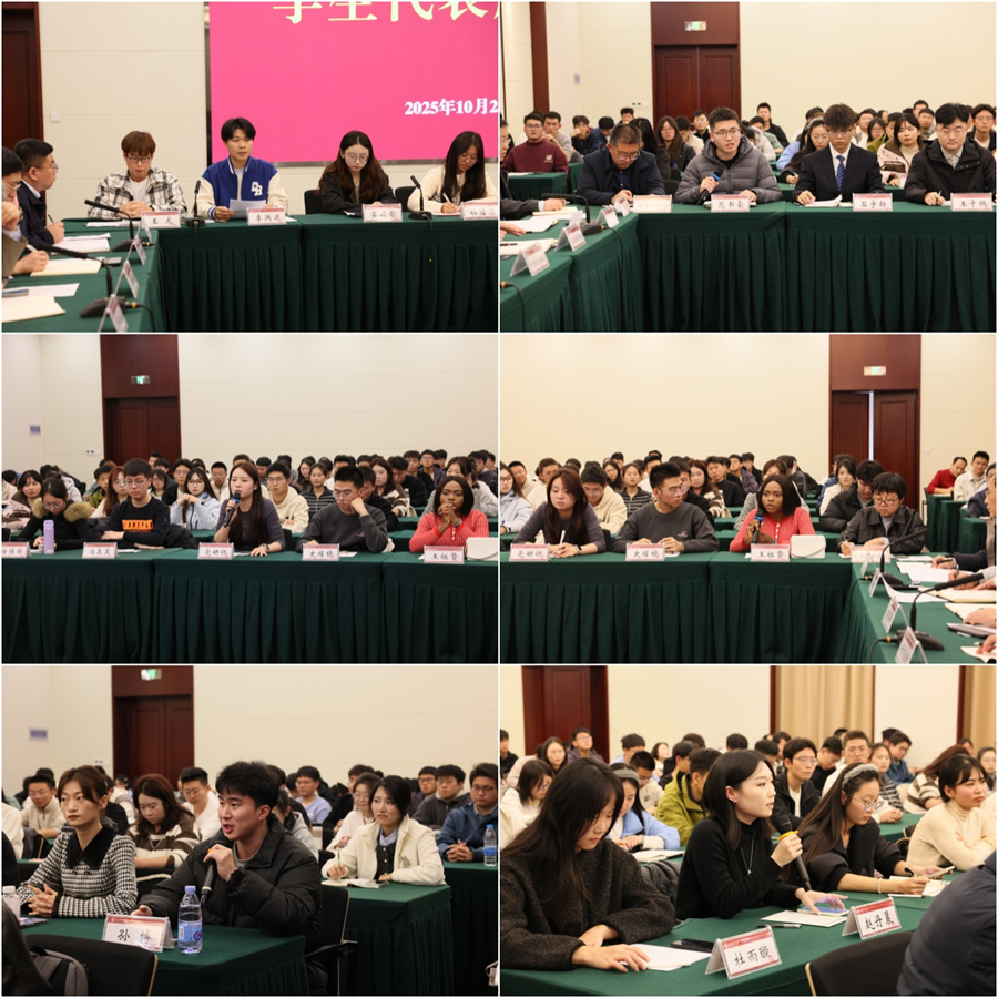座谈会上,25名本科、硕士、博士新生代表结合入学以来的学习生活体验,从不同角度分享感受、提出建议。同学们既肯定了学校在基础设施改善、学术资源供给、人文关怀服务等方面的努力,也围绕学习生活实际需求提出意见建议,充分展现了新生对学校发展的关注与期待。