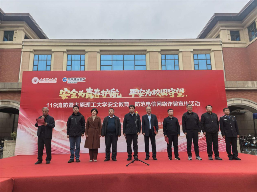 11月7日,由我校主办、中国建设银行山西省分行、晋中市公安局高校分局协办的“安全为青春护航 平安为校园守望”119消防暨太原理工大学安全教育、防范电信网络诈骗宣传活动在明向校区东区广场举行。校党委常委、副校长王志华,中国建设银行山西省分行,晋中市公安局高校分局相关领导出席活动。学校相关部门和学院负责人,本科生、研究生代表参加活动。