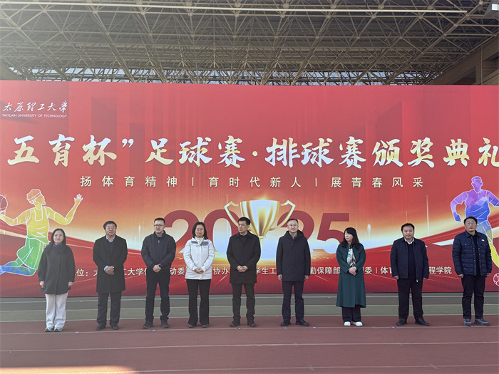 11月21日,太原理工大学2025年“五育杯”足球赛、排球赛颁奖仪式在明向校区东操场隆重举行。本次活动由校体育运动委员会主办,学生工作部、后勤保障部、校团委及体育与健康工程学院联合协办,是学校深入贯彻党的教育方针、落实“五育并举”、深化“以体育人”的重要实践。校党委常委、副校长王志华出席仪式,相关职能部门及学院负责人共同参加。