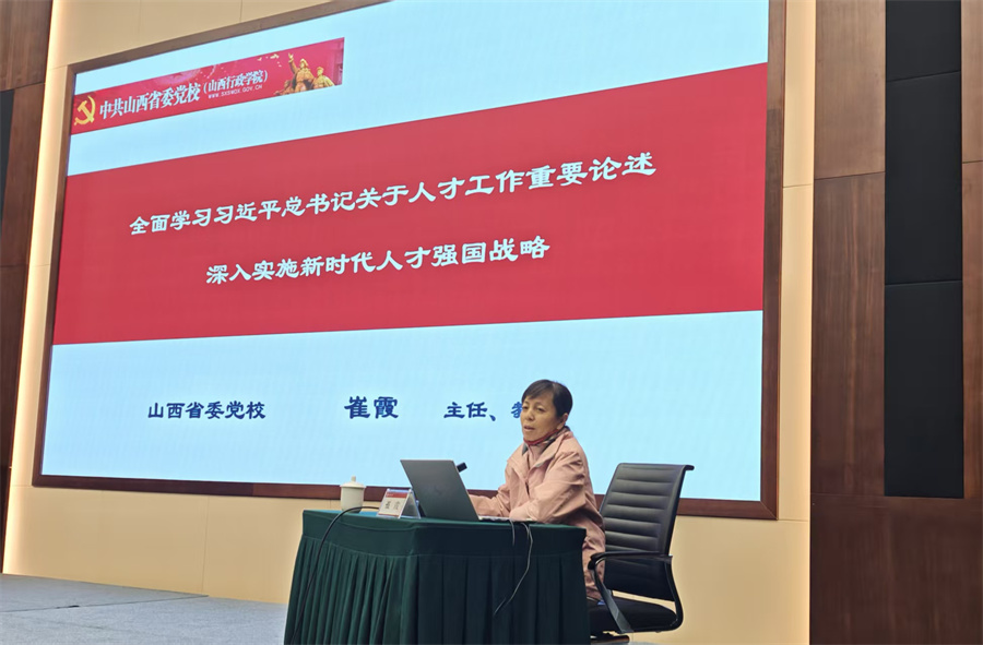 本次研修特别邀请山西省委党校(行政学院)教授、公共管理教研部主任崔霞作题为《领悟习近平总书记关于人才工作重要论述 深入实施新时代人才强国战略》的主题报告,报告内容紧密围绕“新时代新征程新使命”以及“以人才引领驱动支撑中国式现代化”等核心内容展开,为学员们带来了一场思想深刻、内容丰富的理论学习。