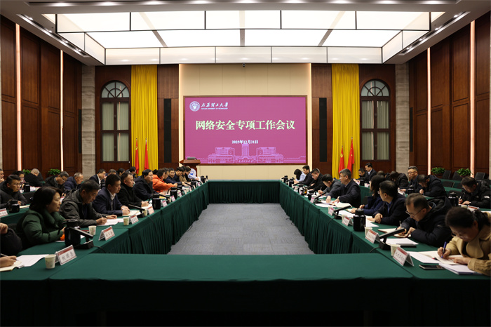 为深入贯彻总体国家安全观,落实《网络安全法》《数据安全法》等法律法规及教育行业要求,全面筑牢我校网络安全屏障,12月31日下午,我校网络安全专项工作会议在明向校区鹏飞会堂召开。校党委书记沈兴全、副校长桑胜波出席会议,各职能部门、二级学院、群团组织和教辅单位负责人参加会议。会议由桑胜波主持。