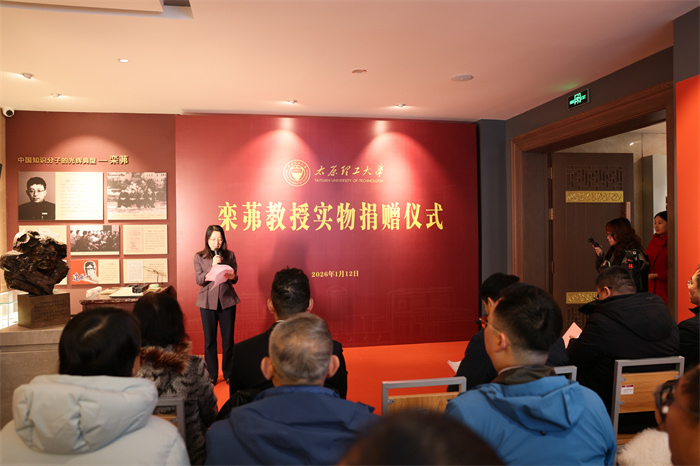 王志华代表学校向栾晶博士颁发捐赠证书,并发表讲话。他高度评价栾茀教授是“太原理工大学发展历程中一座不朽的丰碑”,是“全国知识分子的楷模”和优秀教育工作者的杰出代表。他指出,栾茀教授不仅为学校发展和煤炭人才培养作出重要贡献,更在生命最后时刻写下《煤大办学思想》万言书,病床上仍勉励学生“要做攀登科学高峰的勇士”,其精神至今熠熠生辉。王志华强调,学校将认真整理、妥善保管、充分展示这批珍贵遗物,使其成为校史教育和师德建设的重要载体。