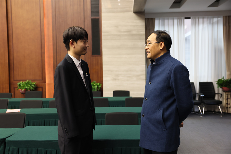 仪式结束后,校党委书记沈兴全、校长孙宏斌分别与王海港进行亲切交谈。
