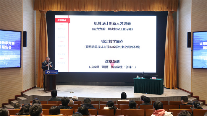 三位评委在闭幕式后的教学能力提升专题报告会上开展了专题讲座。西安交通大学的李宝童教授以《生成式人工智能赋能机械设计课程示范教学暨教创赛心得体会》为主题,分享了AI技术与学科教学融合的前沿经验;山东师范大学的张慧伦教授以《如何设计赛场上的魅力课堂》为主题,系统阐释了优质课堂的设计方法与策略;河北工业大学的王坤教授以《从青年教师成长的视角浅谈课程思政与教学创新》为主题,阐述了课程思政与教学创新的深度融合路径。这三场报告为在场的教师带来了一场既具理论高度,又有实践指导意义的教学盛宴。