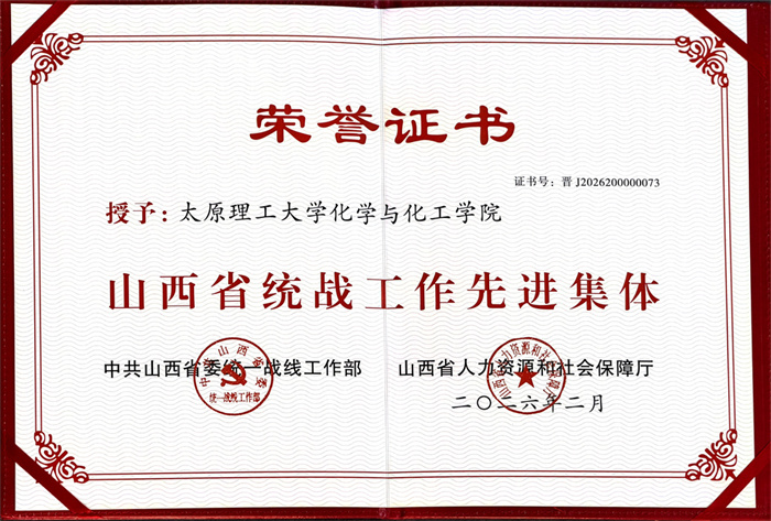 会议宣读了关于表彰山西省统战工作先进集体和先进个人的决定,阳泉市、长治市、晋城市、省直工委、太原理工大学等5个单位负责同志及获表彰的先进代表作交流发言。我校化学与化工学院荣获“山西省统战工作先进集体”荣誉称号,校党委副书记、副校长肖连团代表学校参会并作交流发言。
