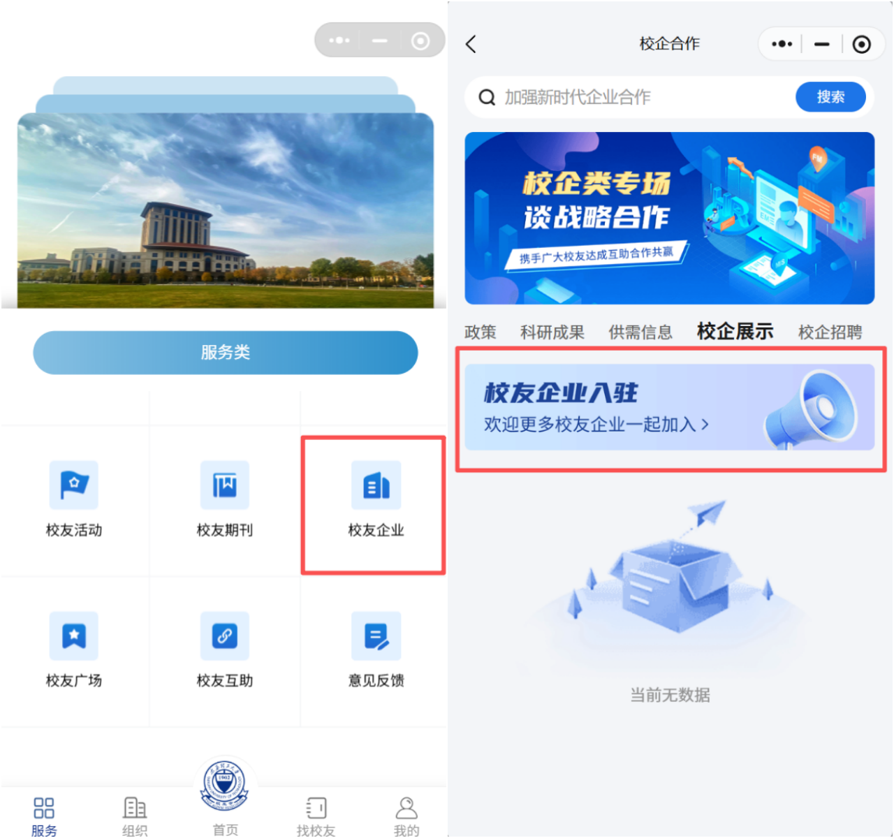 可浏览、入驻校友企业,搭建校企合作与职业发展桥梁。