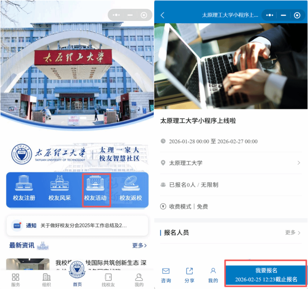 3.请各位校友积极转发本文,动员身边的太理同窗一起注册,壮大太理校友社群,凝聚同心之力,共筑母校辉煌。