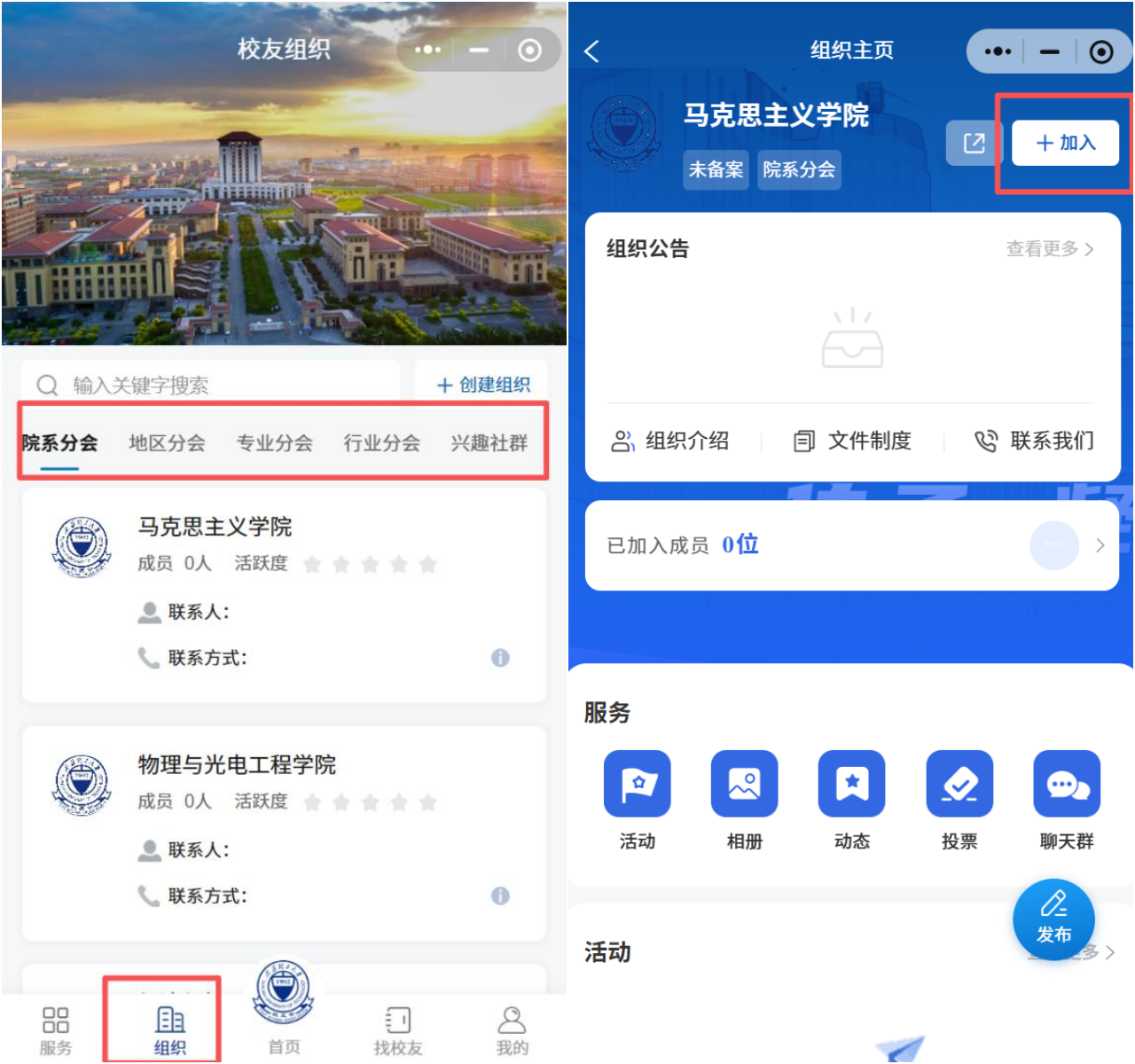 可一键报名参与丰富多彩的 “热门活动”,结识志同道合的校友伙伴。