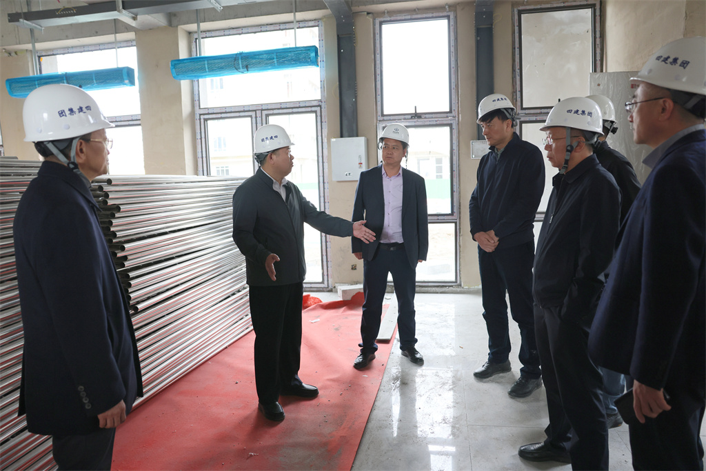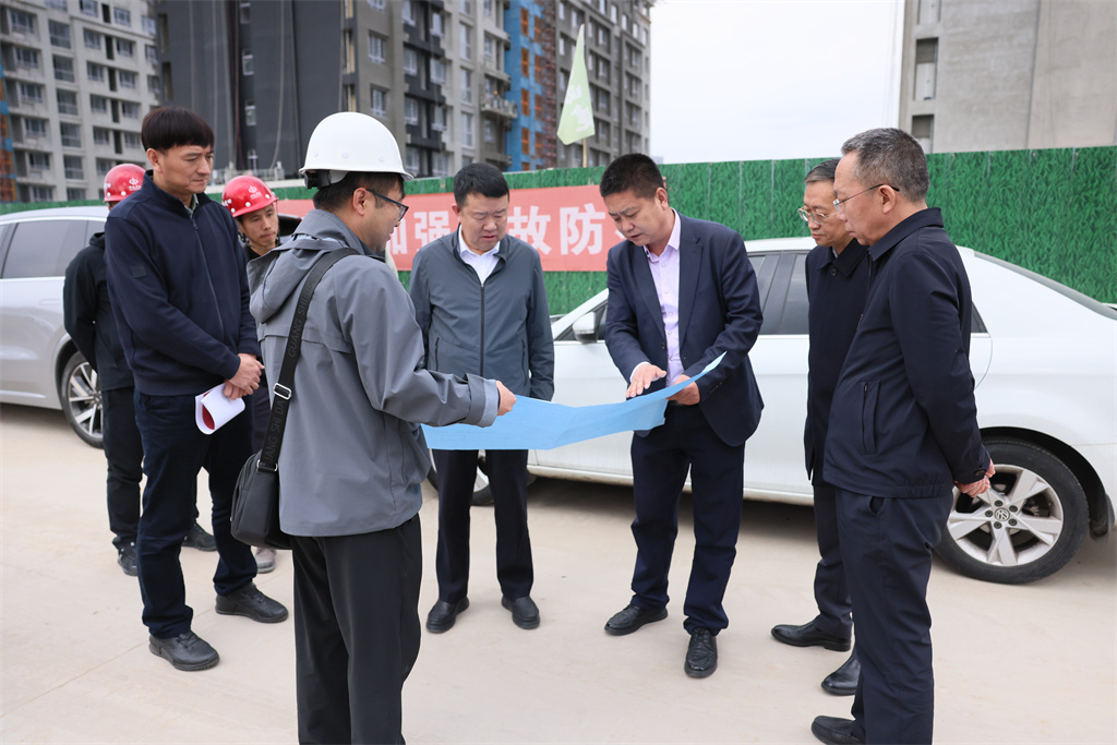 调研现场,沈兴全详细听取项目负责人关于建设进度、安全管理、配套设施规划的汇报,细致询问工期安排、质量监管、材料选用等重点事项,实地查看项目主体结构施工、内部空间划分等关键环节,全面掌握项目建设整体情况。