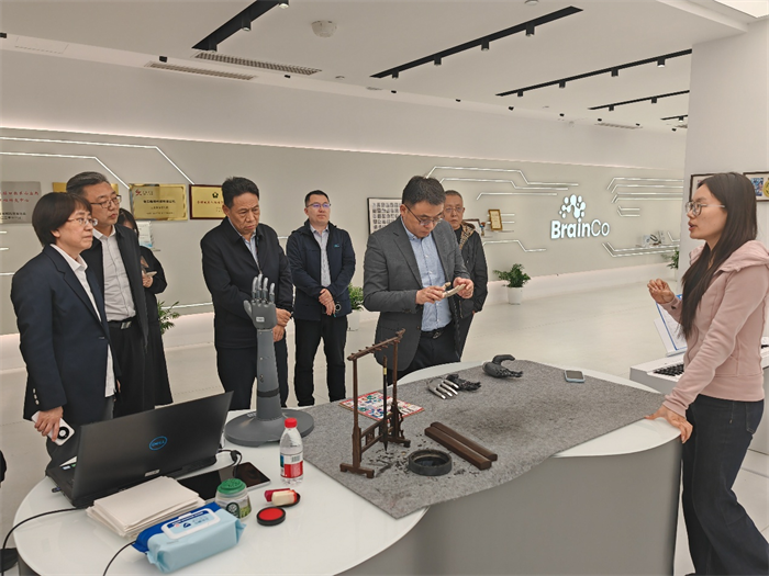 签约仪式后,杨晓伟一行参观了强脑科技脑机接口实验室。