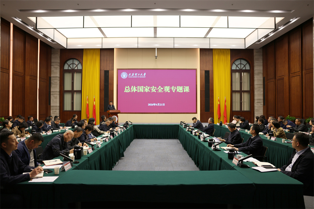 4月21日上午,以全民国家安全教育日为契机,校党委书记沈兴全为全校教职工代表进行专题授课。课程以《统筹发展和安全,护航学校“十五五”高质量发展新征程》为主题,立足学校“双一流”建设攻坚突破、“十五五”规划开局起步的关键节点,深入阐释了总体国家安全观的丰富内涵,紧密结合学校发展实际剖析风险隐患、明确工作要求,为大家如何立足岗位筑牢安全防线、护航学校事业高质量发展指明了方向。