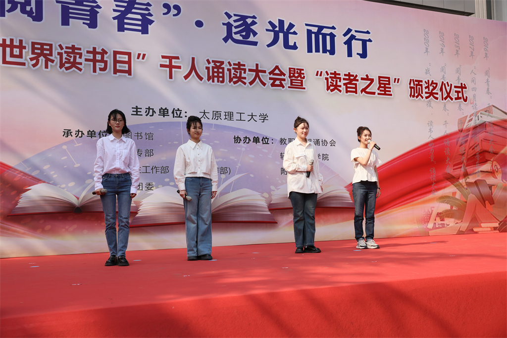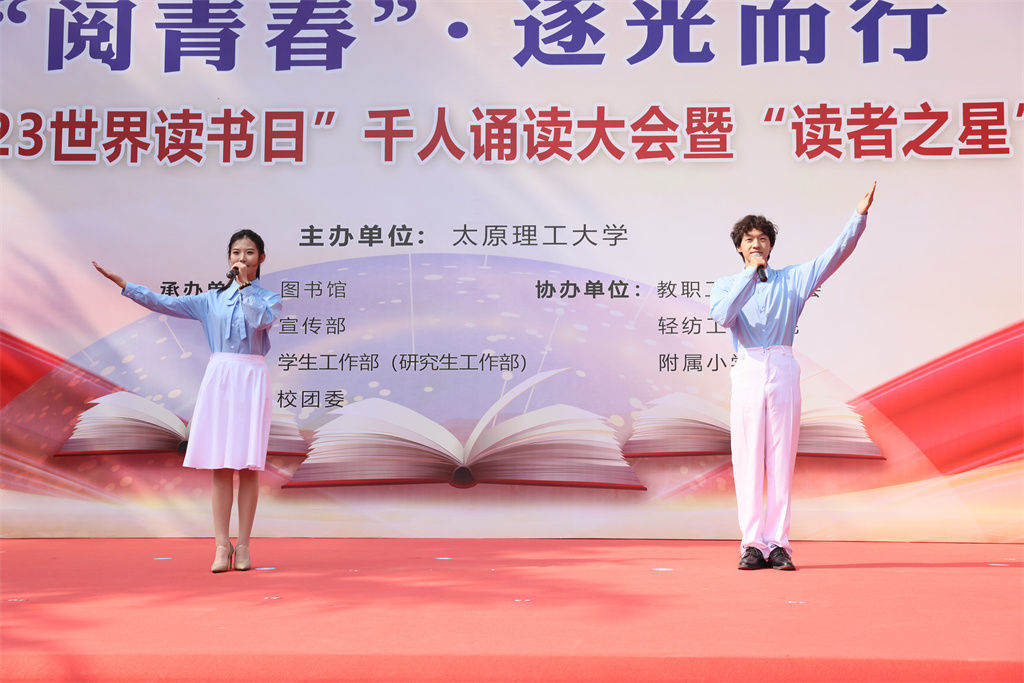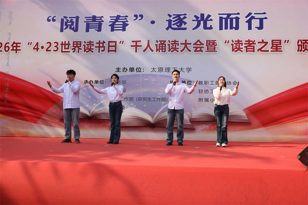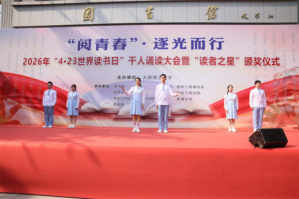 书香润校园,诵读启新程。“4·23世界读书日—阅青春千人诵读”活动是太原理工大学多年来精心打造的大型读书活动,已成为有影响力的阅读文化品牌。本次活动恰逢《全民阅读促进条例》正式实施后的首个全民阅读推广重要节点,学校以此次活动为抓手,深入贯彻落实条例精神,引导广大师生亲近书籍、崇尚阅读、涵养品格,持续推动全民阅读在校园走深走实。