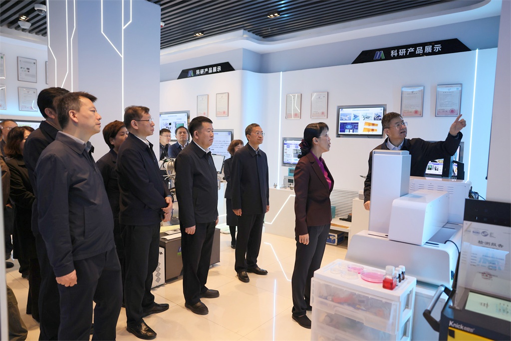 随后,赵红严一行前往人工智能微纳传感山西省重点实验室。该实验室主任、山西省政协委员、民进山西省委会副主委、我校副校长桑胜波向赵红严一行介绍了实验室发展建设情况和主要科研成果和科研进展情况。赵红严深入了解实验室建设、科研攻关、成果转化及人才培养情况,勉励团队坚持创新驱动,强化产学研用协同,为山西高质量发展提供科技与人才支撑。