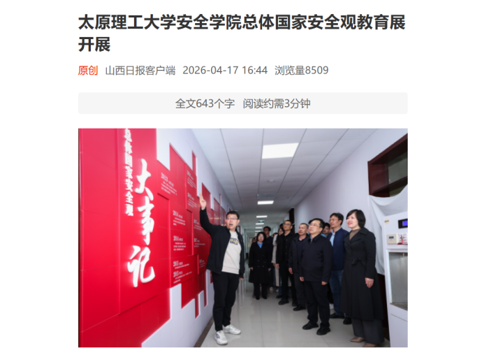 今年4月15日,是第十一个全民国家安全教育日。当天,太原理工大学安全与应急管理工程学院总体国家安全观教育展参展活动暨红色教育基地开展仪式举行,吸引了众多师生前往观看。